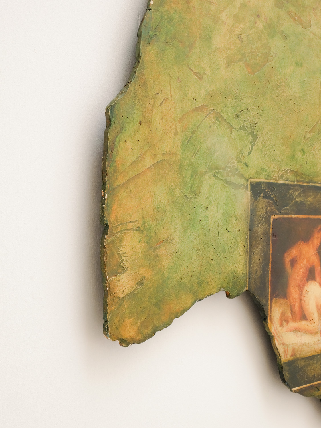 Mixed media on wood, after an erotic fresco in Pompeii, circa 1990.