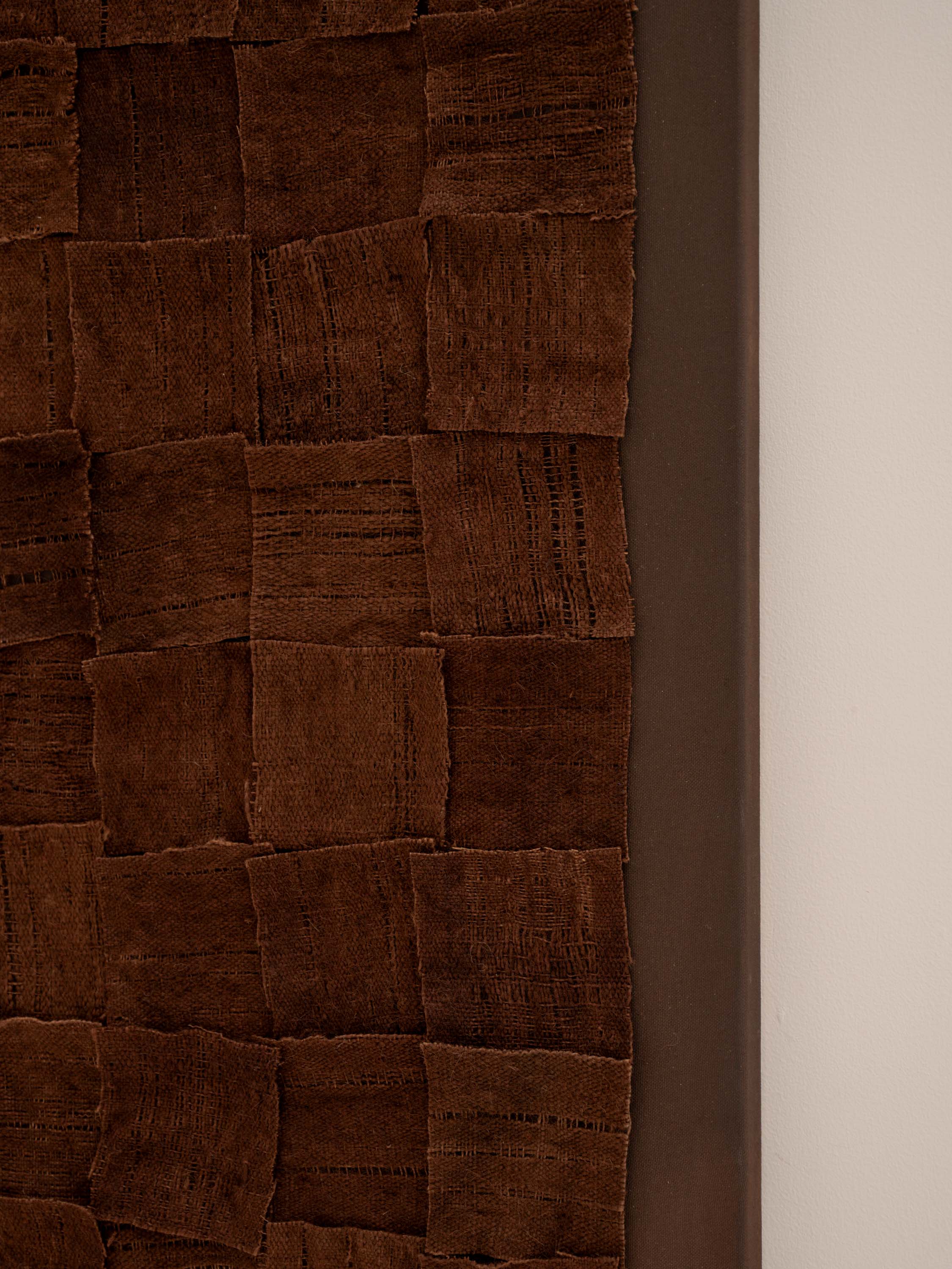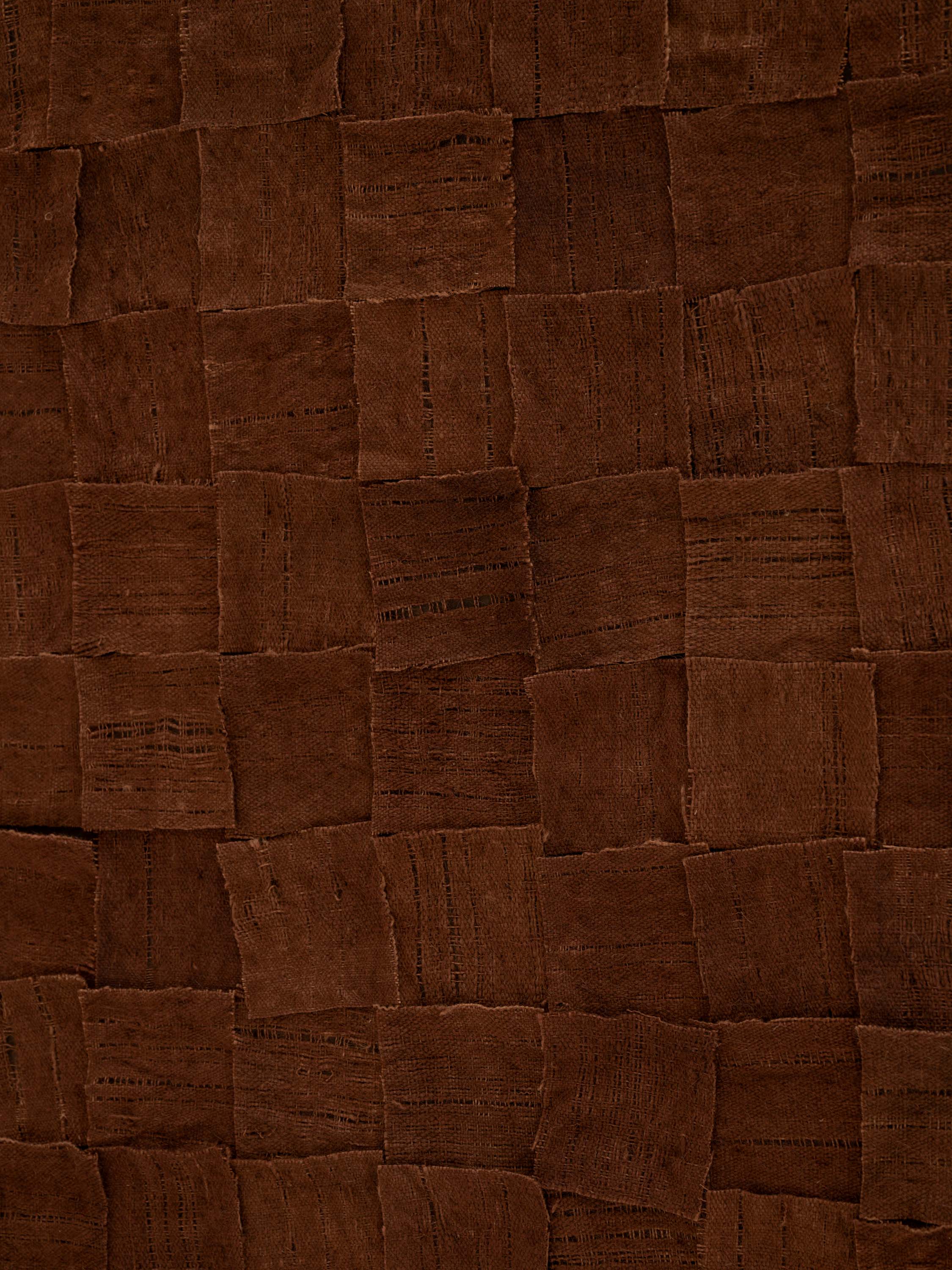 Finally, the pieces are sewn by hand onto canvas that has been pre-painted with natural ochres.